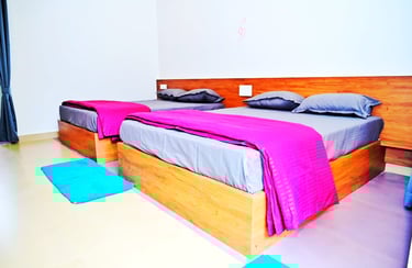 Our 6 and 8 sharing rooms are ideal for larger groups or friends traveling together. Comfortable, spacious, and well-maintained, these rooms offer a cozy stay with beautiful views of the Kodagu hills, making group trips relaxing and memorable.