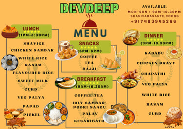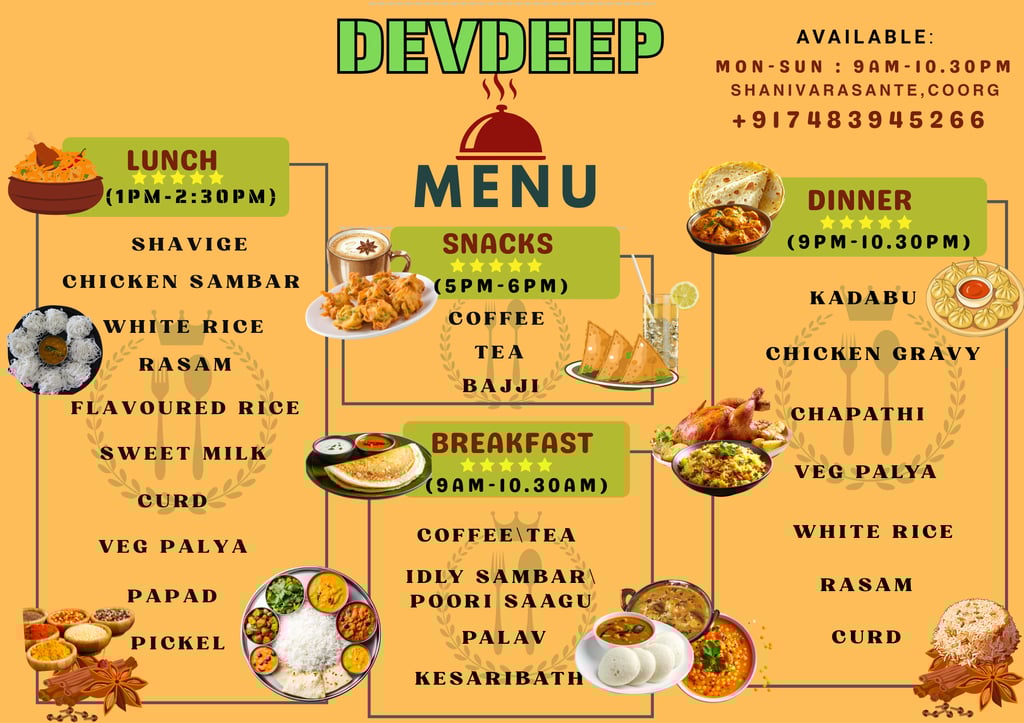 Enjoy authentic Kodagu cuisine made with love and local ingredients.