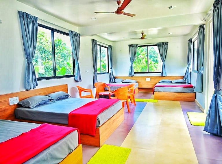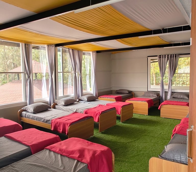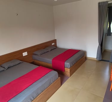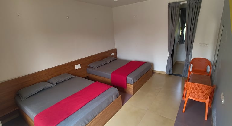Cozy two-sharing rooms designed for guests who prefer privacy and comfort. Perfect for couples or close friends looking for a peaceful stay with essential modern amenities.